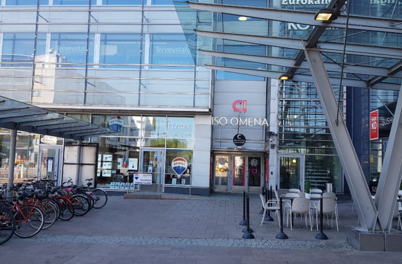 Isosta Omenasta vuokrattavana liiketila (52 m2). Tila sijaitsee yksi kerros katutasoa ylöspäin.