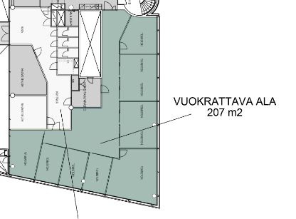 Vuokrattavana kulmatoimisto ( 207 m2, jyvityksineen 252 m2). Valoisa huonetoimisto sijatsee 3.kerroksessa ja siitä on hienot näkymät merelle päin.