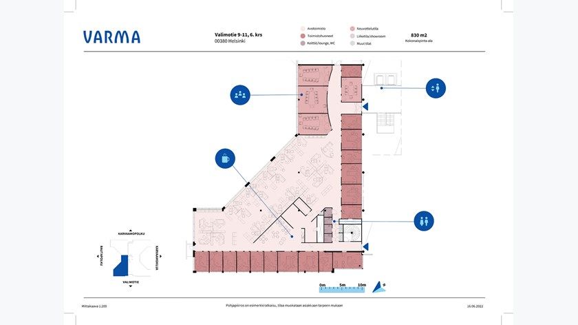 Nykyaikainen ja edustava toimistotalo hyvällä sijainnilla Valimon aseman lähellä. Ohessa havainnollistavia kuvia tilaratkaisuista kiinteistössä.