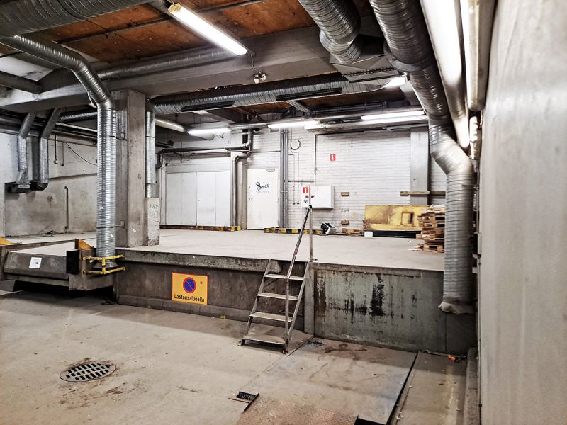 Varastohalleihin kuljetaan lastauslaitureiden ja käytävän kautta. Lastauslaitureita on kolme erikokoista. Ne sijaitsevat isossa pysäköintihallissa, johon kuljetaan viereisen liikerakennuksen ajoluiskan kautta.