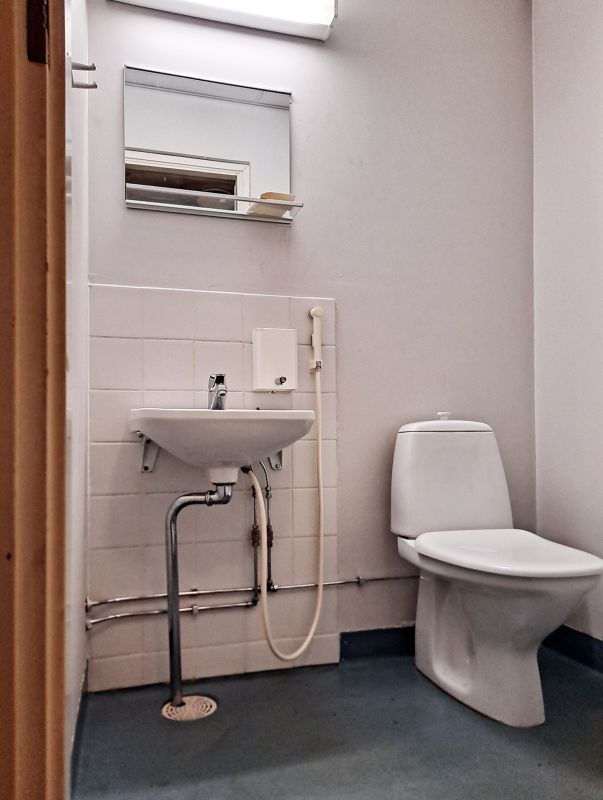 Tilat ovat siistissä kunnossa ja vuokralaisella on muiden toimijoiden kanssa yhteiskäytössä pieni keittiö, suihku ja kaksi wc:tä.