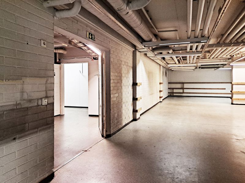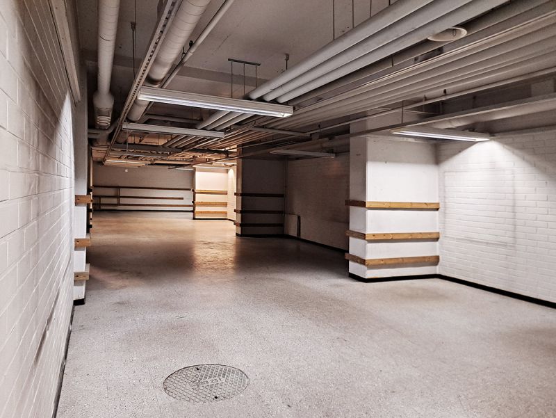 Porvoon keskustassa on vuokrattavana kaksi varastotilaa ison asuin- ja liikerakennuksen kellarissa. Varasto A on noin 115 m², halli E noin 57 m². Tilat on merkitty pohjakuvaan keltaisella värillä.