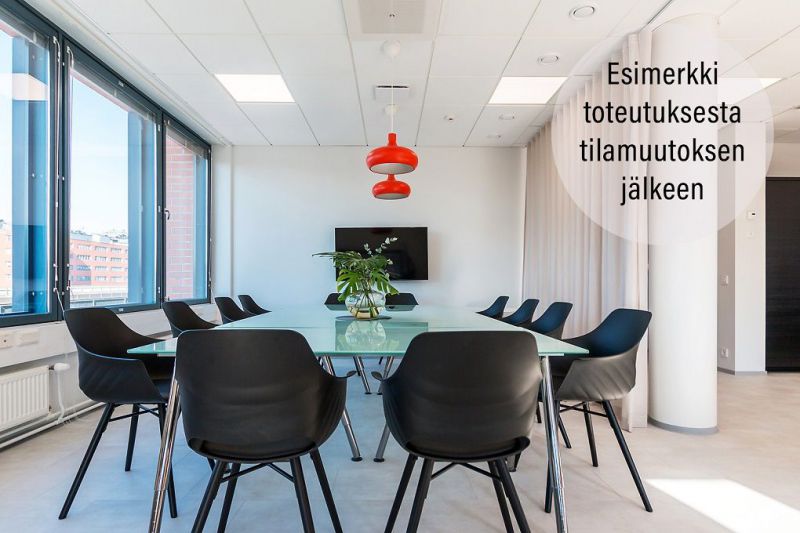 Vuokrataan vuonna 2019 täysin remontoitu toimistotila. Valoissa ja avarassa toimistossa on avotilaa ja huoneita. Tilaa on mahdolista muokata seuraavlla käyttäjlle sopivaksi. Kiinteistössä on vuokrattavia neuvottelutiloja, pyöräparkki, kuntosali sekä kulku sisäpihan kautta lounasravintolaan, sisäkautta autohalliin ja liikuntatiloihin.Erittäin hyvä sijainti aivan Kalasataman metroaseman vieressä. Autoilijoille löytyy paikkoja talon parkkihallista ja Redin palvelut ovat kävelyetäisyydellä. Lisätietoja soita 020 730 4530 tai info@repoint.fi. Palvelumme on tilanhakijalle ilmainen.