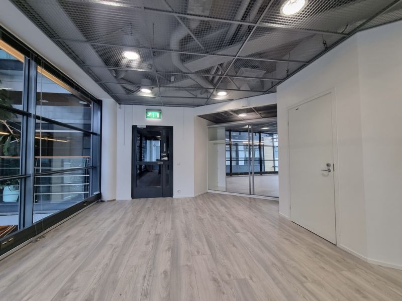 Tämä tila on kooltaan 218,5m2 ja se sijaitsee kiinteistön 5. kerroksessa. Toimiston pinta-alaan lisätään vielä 10m2 jyvitykset, eli osuus yhteiskäyttöalueista.