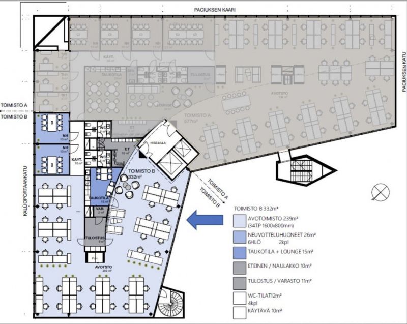 Vuokrataan Paciuksenkadulla toisen kerroksen 332m2 toimistotila vehrein näkymin Meilahden arboretumiin, kivenheiton päässä Meilahden Kampuksesta Tilaan mahtuu työskentelemään noin 35 henkilöä. Tilat muokataan ja remontoidaan vuokralaisen tarpeen mukaan.