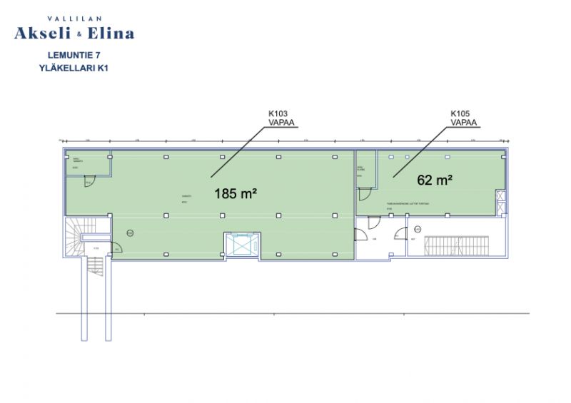 Kellarikerroksen 185 m² varasto Vallilan Akselista.