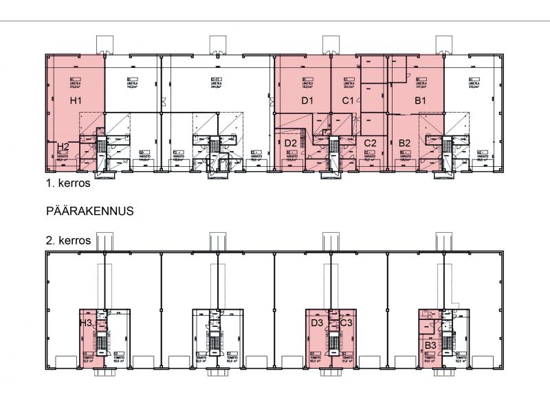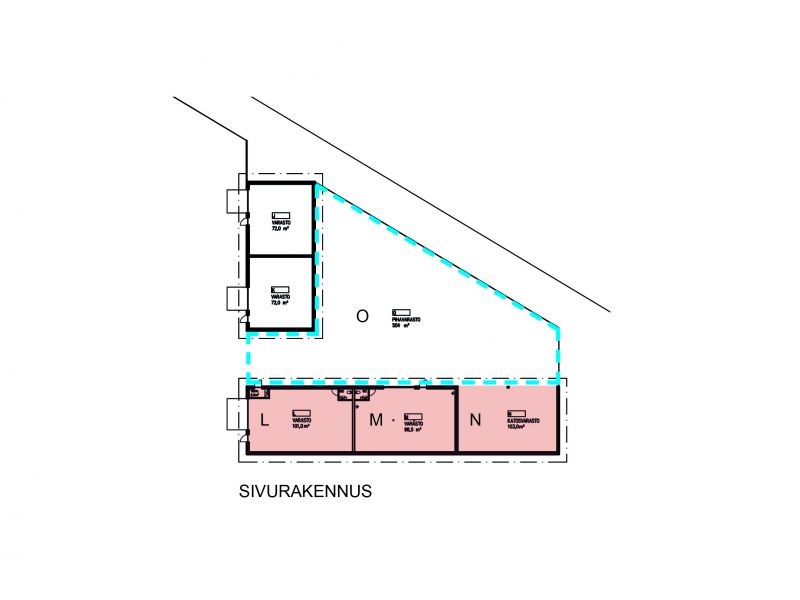 Kaikki tilat voidaan myydä joko yhdessä tai erikseen. HUOM! Tilat B1, B2, B3, varastot L ja M, kylmä katos N sekä aidattu piha-alue O myydään kuitenkin kaikki yhdessä. Nämä alueet on rajattu asemapiirrokseen vihreällä viivalla.