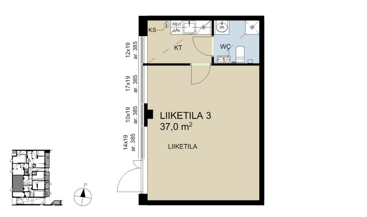 Velaton hinta on 92 500 €, josta taloyhtiön lainaa on noin 55 500 € ja omarahoitusosuus vain 37 000 €. Maksat siis omaan taskuusi, et vuokranantajalle. Jos olet arvonlisäverovelvollinen yrittäjä, voit lisäksi saada merkittäviä alv-vähennyksiä.