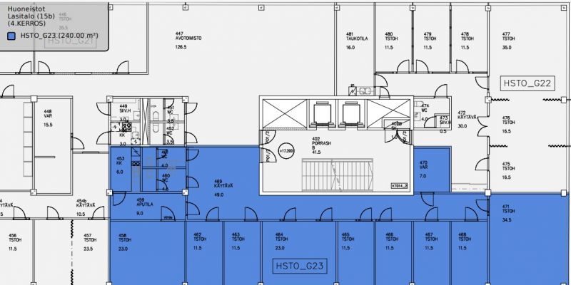 Vuokrattavana 4. kerroksen toimistotilaa entisessä Töölön sokeritehtaassa.