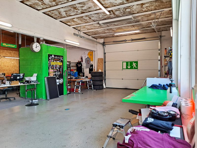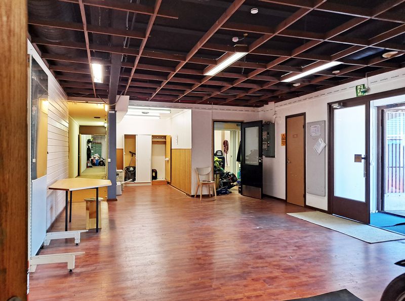 Myytävän alueen (pohjakuvassa punaisella) koko on noin 1’900 m². Se koostuu pääasiassa hallitilasta, jota on osittain jaettu kevyin väliseinin. Rakennuksessa on tuotanto-, varasto- ja harrastetiloiksi sopivien hallien lisäksi myös esimerkiksi myymäläksi soveltuvaa liiketilaa sekä toimisto- ja sosiaalitiloja.