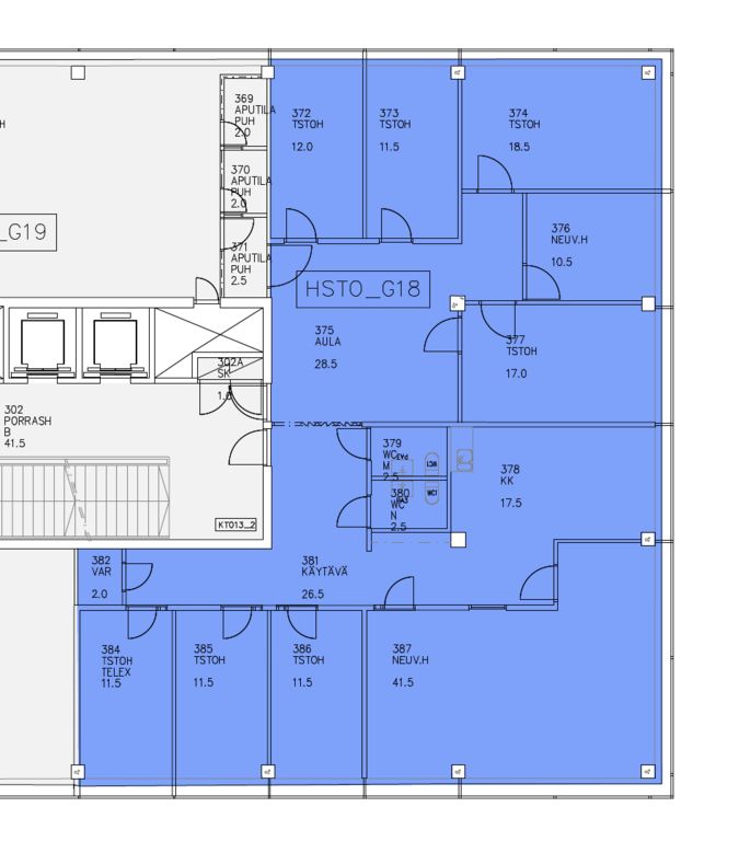 Tämä 235m2 toimistotila sijaitsee kiinteistön 3. kerroksessa. Toimisto on huoneellista, mutta se on mahdollista muuttaa myös avotoimistoksi.