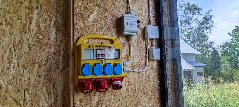 Varastotila jossa liukuovi valot ja sähköt (voimavirta)