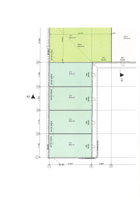 Koko rakennuksessa on 6 kpl halleja, joista vapaana 2 hallitilaa LT1 ja LT2, kooltaan 90,5m²/halli. Halleissa nosto-ovi 3500 x 4000 ja lisäksi erillinen käyntiovi. Vapaa korkeus 5,5m.