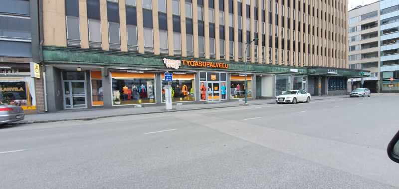 Porissa torin laidalla näkyvällä paikalla katutason liiketilaa