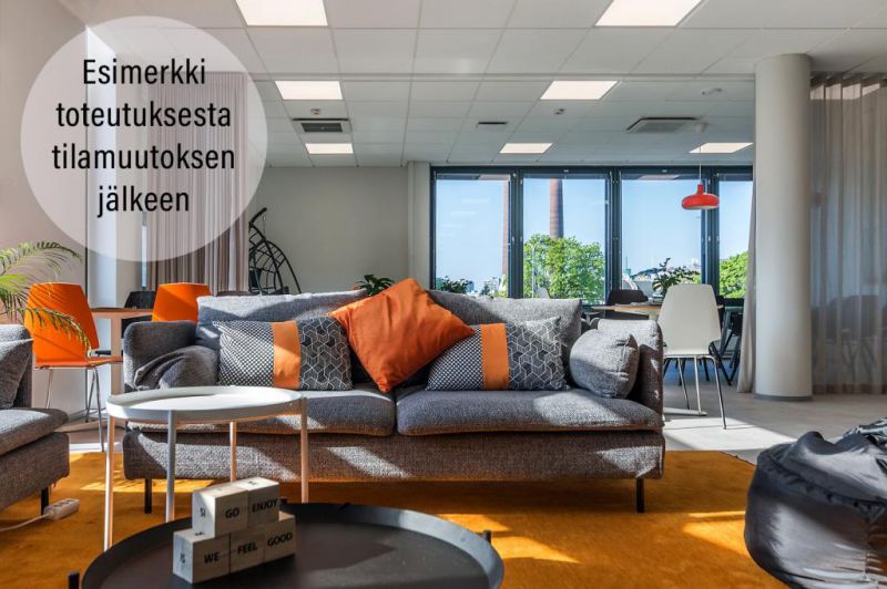 Hiljattain remontoitu, tehokas toimistotila 221,5 m² (+ aulajyvitys 11 m²). Tämän toimiston valoisaan avotilaan mahtuu 18 työpistettä, lisäksi tilassa on neuvotteluhuone 9 hengelle ja hiljainen huone, johon sopii 2 työpistettä. Keittiö + loungetila sijaitsevat omassa kulmassaan. Ikkunat itään kadulle ja länteen sisäpihalle. Tilassa on datakaapelointi.