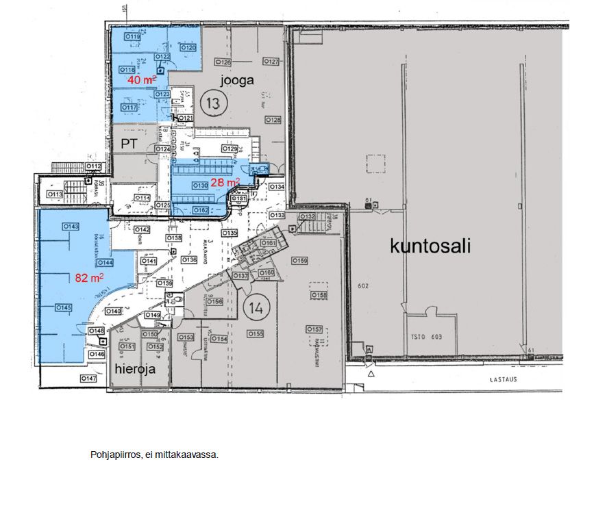 Tilat noin 28 m2, 40 m2 ja 82 m2.