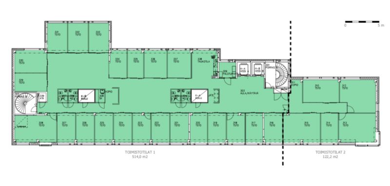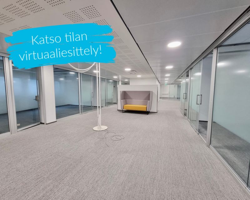 Kyseinen 638 m2 toimistotila sijaitsee kiinteistön 3. kerroksessa. Toimistossa on lasiseinäisiä huoneita, avotilaa sekä omat keittiö- ja wc-tilat.