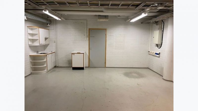 Vuokrattavana varastotilaa kiinteistön 1. kellarikerroksesta. Varasto-osuudessa on tehty huonejakoja kevyillä väliseinillä.
