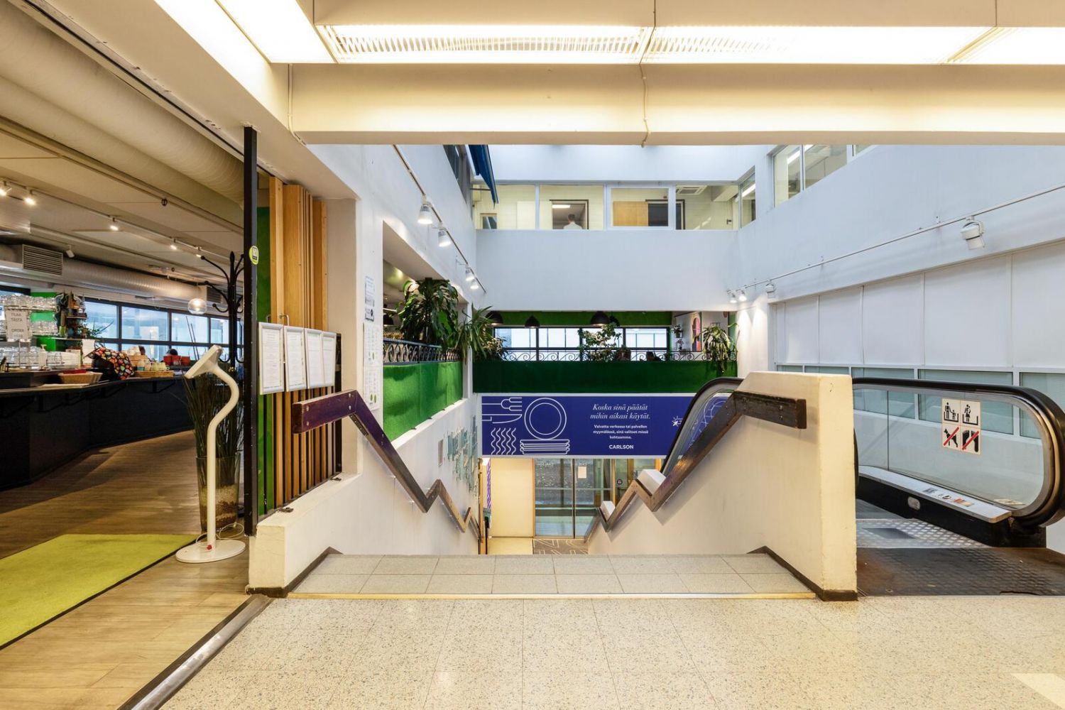 Lounaspaikkoihin, ruokakauppaan, kauppakeskus Minnaan sisäyhteydet.
