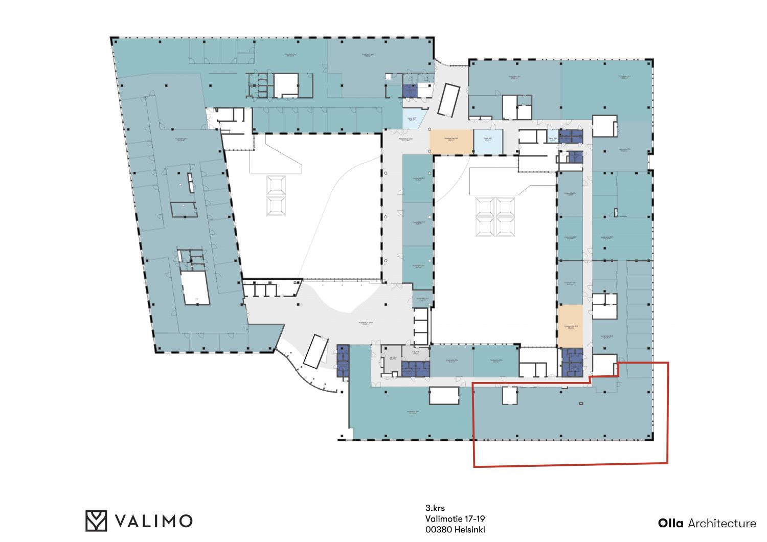 3. kerroksen muokattavissa oleva 356 m² toimisto.