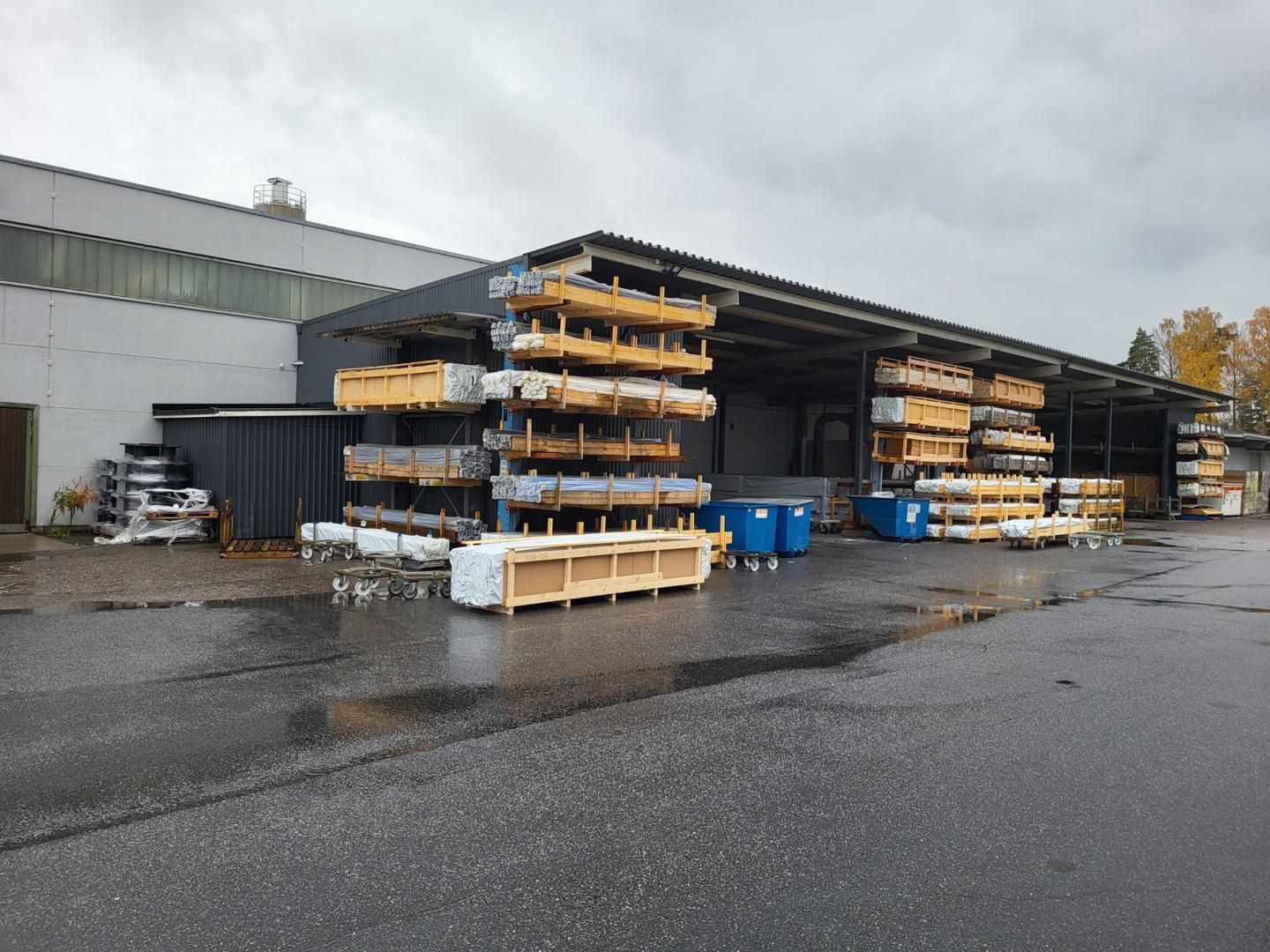 Alueella on laajat pihavarasto-alueet ja alue on aidattu.