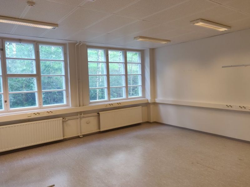 Tämä 26 m2 viihtyisä toimisto on rakennuksen toisessa kerroksessa. Näkymät tästä ovat valtatie 12 suuntaan. Kerroksessa on yhteiskäyttöiset sosiaalitilat. Rakennuksessa on oma lounasruokala.