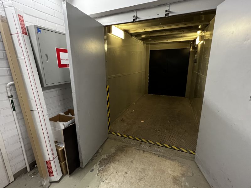 Tilaan tavaralogistiikka suuren tavarahissin kautta. Tila sijaitsee näkyvällä paikalla keskustassa, vastapäätä toria.