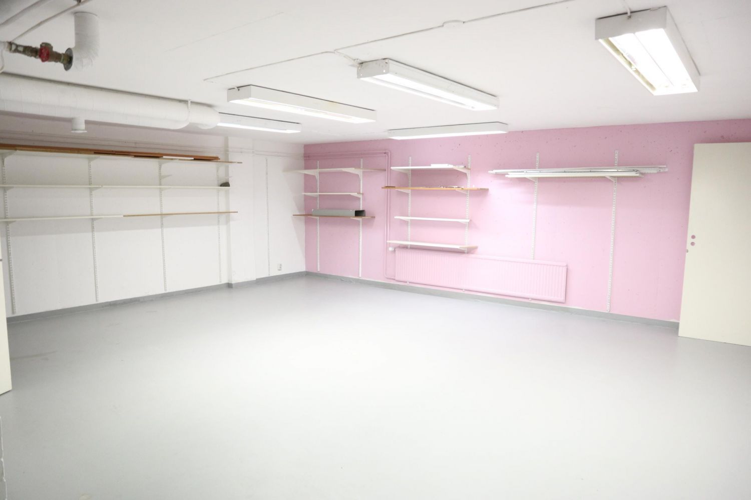 Katutason liiketila 198 m2 jonka voi jakaa kahteen osaan, kellarissa lisäksi 56 m2