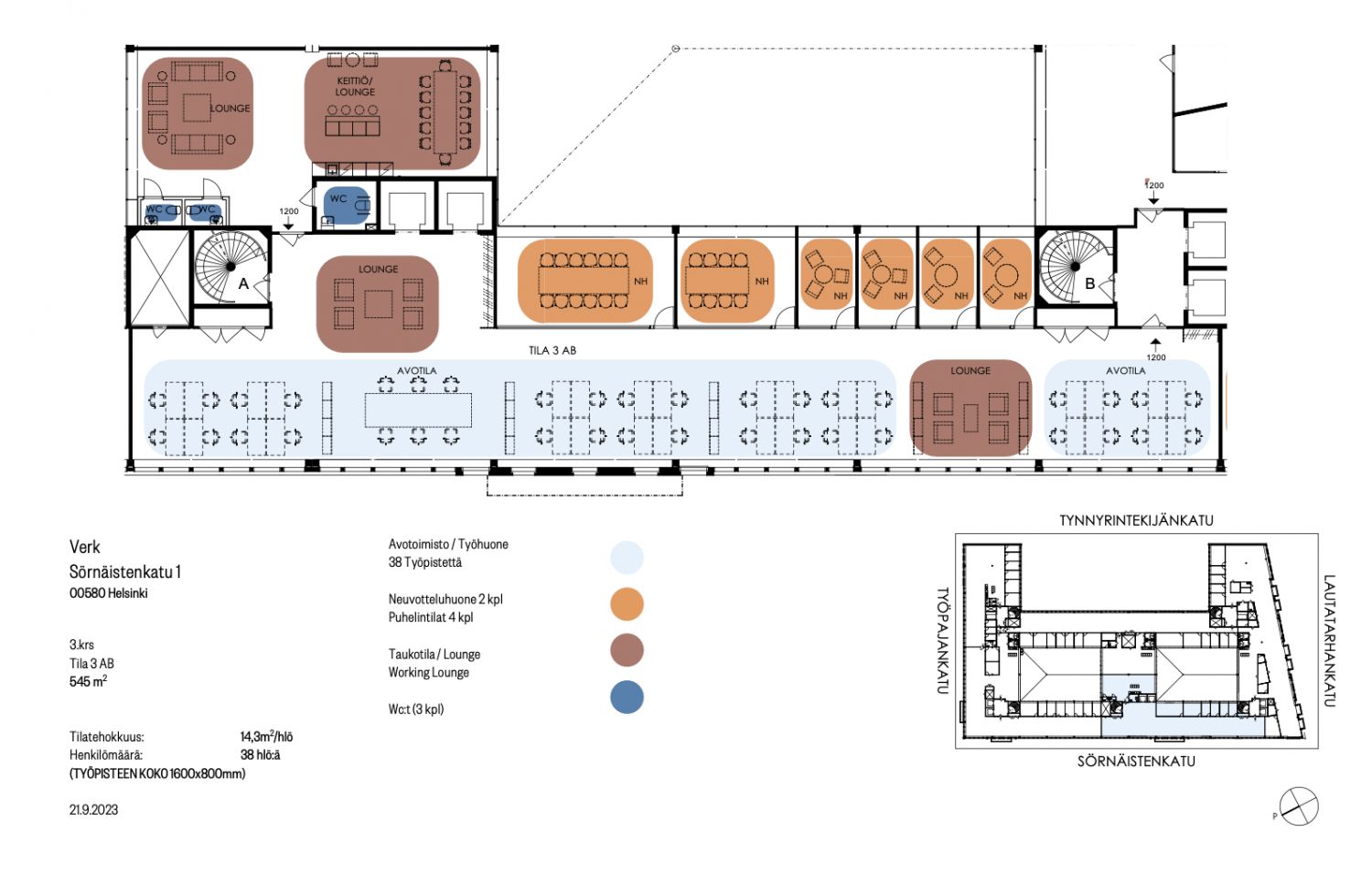Koko kerroksen kattava tilakokonaisuus, joka voidaan jakaa pienempiin toimitiloihin. Kohde on kuin luotu nuorelle ja luovalle yritykselle. Sijaitsee trendikkäällä ja kasvavalla Kalasataman alueella.