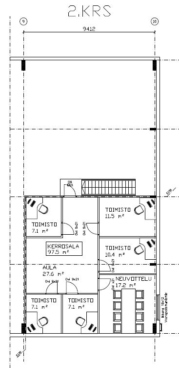 Toimisto-osa koostuu alakerran sosiaali- ja avotilasta sekä yläkerran keittiöstä, toimistohuoneista ja neukkarista. Tilat vapautuvat sopimuksen mukaan. Tarvittaessa samasta pihapiiristä on mahdollisuus vuokrata lisää hallitilaa 246m2.