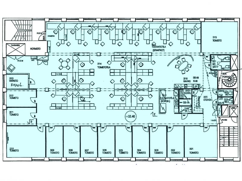 Huoneisto sopii loistavasti vaikkapa erilaisille asiantuntijaorganisaatioille, esimerkiksi suunnittelu- tai mainostoimistolle, rakennuttajalle, lakiasiantoimistolle, tilitoimistolle… Tilat on merkitty pohjakuvaan sinisellä värillä.