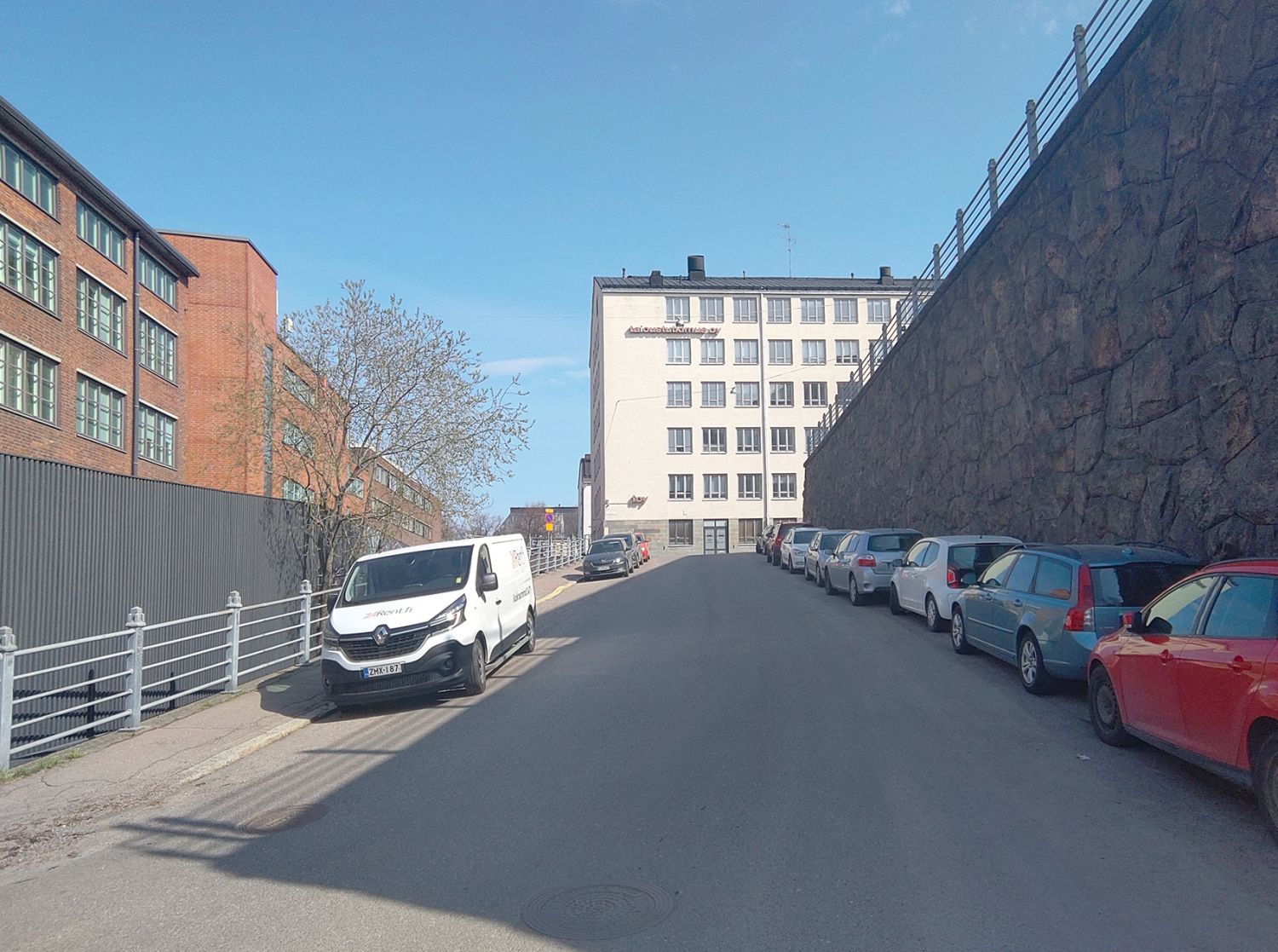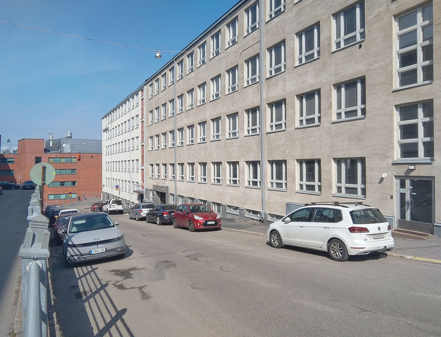 Pysäköinti: Kadulla, pysäköintihallissa (100 €/kk + alv), ulkoparkkipaikalla (60 €/kk + alv)