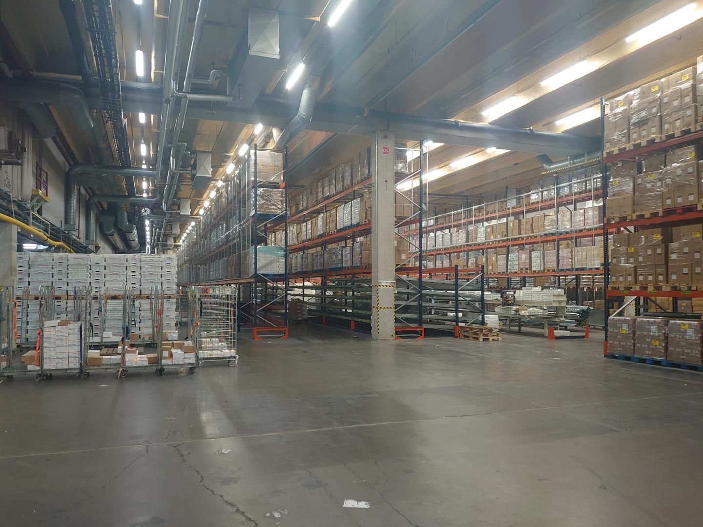 14.000 m2:n varastotilan vapaa korkeus on 11 m ja lattian kantavuus 5.000 kg/m2.