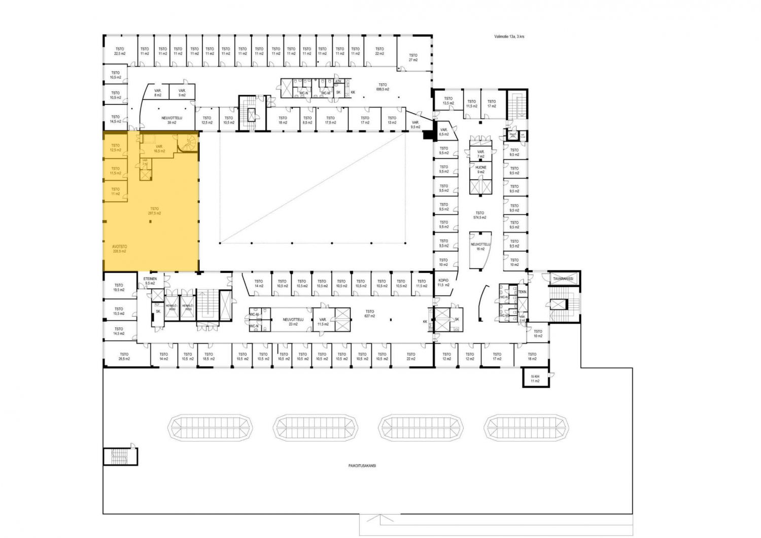 Kompakti 297,5 m2 toimistotila rakennuksen kolmannessa kerroksessa, joka on helposti yhdistettävissä suurempiin kokonaisuuksiin. Sisältää sekä yksittäisiä toimistohuoneita että runsaasti avointa tilaa. Tilaa on mahdollista remontoida mieleisekseen esimerkiksi yhdistämällä pienempiä huoneita avoimeksi tilaksi ja jakamalla tilaa moderneilla lasiseinillä. Suunnittelemme remontit ja muutostyöt aina asiakkaan toiveiden mukaan.