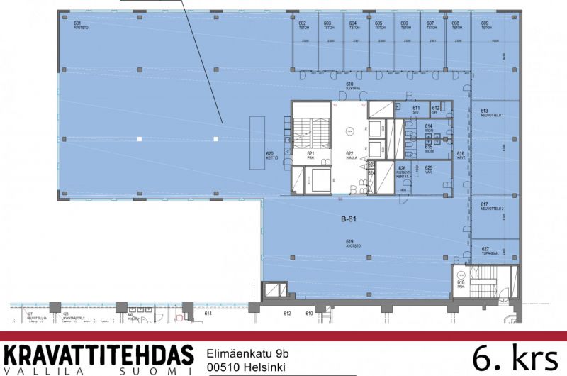 Vuokrataan kuudennen kerroksen 865m2 toimistotila, joka on muokattavissa juuri sellaiseksi että se palvelee yrityksen tarpeita optimaalisesti. Modernit puitteet klassikkotalossa ovat inspiroiva työympäristö, niin työntekijöille kuin asiakkaillekin. Kiinteistössä on Fazerin lounasravintola- ja kahvilakonsepti Ravintola Kravattitehdas. Talossa on eri kokoisia kokoustiloja ja auditorio (60-70 hlö) uudistettu 2018. Kiinteistössä myös sähköauton latauspiste. Tulossa lainapolkupyöriä. Autopaikkoja on yhteensä 176. Naapuritontilla on Q-Park Vallila, jossa on 700 pysäköintipaikkaa Julkisen liikenteen osalta raitiovaunu- ja bussipysäkkejä löytyy muutaman sadan metrin päästä, lähimmät raideliikenteen asemat puolestaan Pasilasta (juna) ja Sörnäisistä (metro).