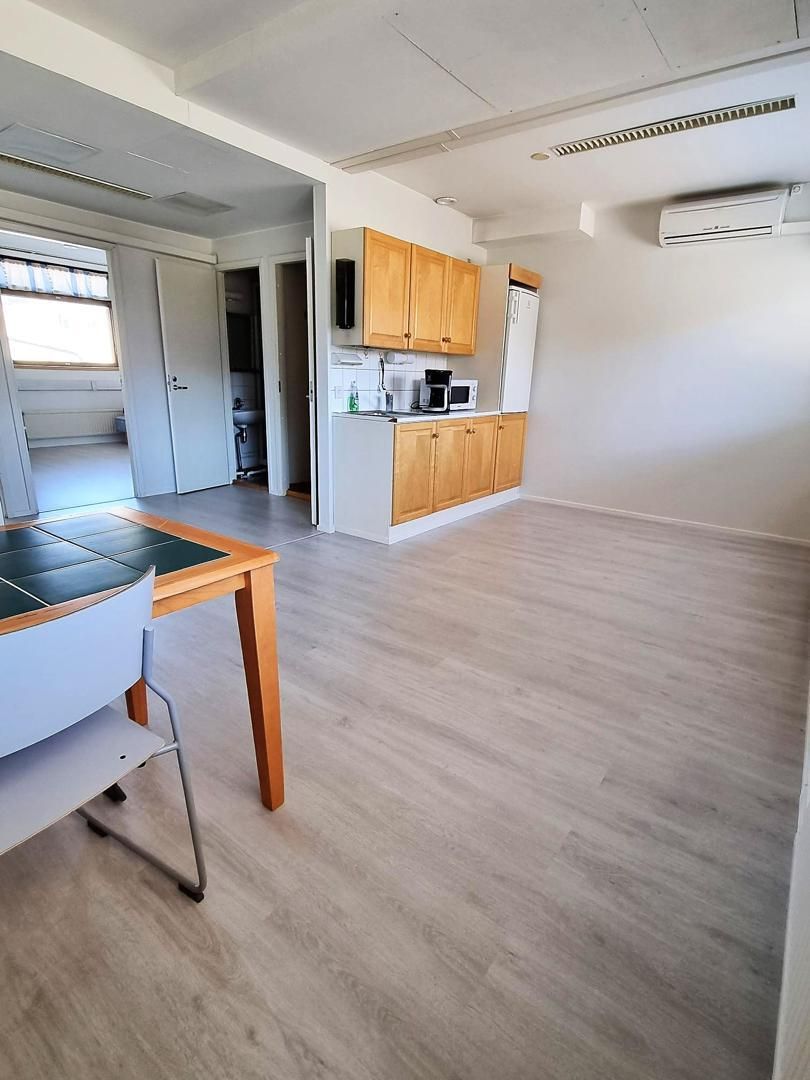Tiloina 5 erillistä toimistohuonetta, vastaanottoaula ja yhtenäinen keittiö - ja neuvottelutila sekä erilliset wc ja suihkutilat(suihkutila mahdollista palauttaa wc- tilaksi).