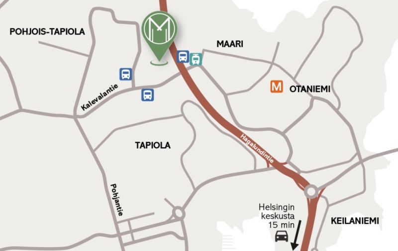 Sijaintinsa puolesta Maarinporttiin on helppo saapua. Kiinteistön oman pysäköintihallin ansiosta parkkipaikan etsimiseen ei kulu turhaa aikaa ja kiinteistön uudistuksen yhteydessä pysäköintihalliin lisätään myös sähköautojen latauspisteitä. Kehä I:tä pitkin kulkevat lukuisat bussit, ja runkolinja 550 palvelee erityisen hyvin myös Maarinporttiin saapuvia. Lähin metroasema on Aalto-yliopisto, josta kävelee kohteeseen alle 15 minuutissa. Tapiolan keskus ja Kauppakeskus Ainoan kattavat palvelut ovat vain noin 2 km päässä.