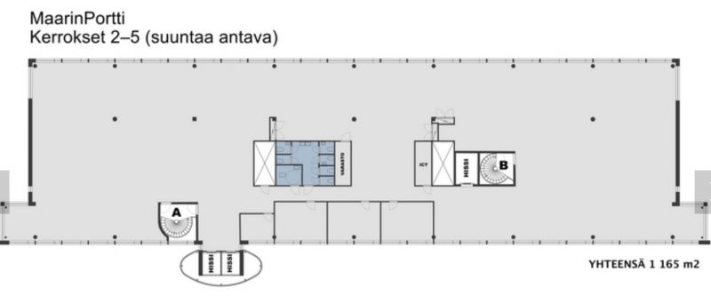 Tuo yrityksesi täysin uudistettuihin toimitiloihin! Maarinportti on v. 2024 remontista valmistuva toimistokohde. Tämä on esimerkki kolmen toimistokerroksen tilasta, johon voi saada n. 170 – 250 työpistettä. Tila on jaettavissa/laajennettavissa 2500 m2. Tilankäyttöratkaisuun ja materiaalivalintoihin voi vaikuttaa. Käytössä on vuokranantajan tarjoama sisustussuunnittelija. Pysäköintipaikkoja on tarjolla kiinteistön pihalla ja lämpimässä pysäköintihallissa.