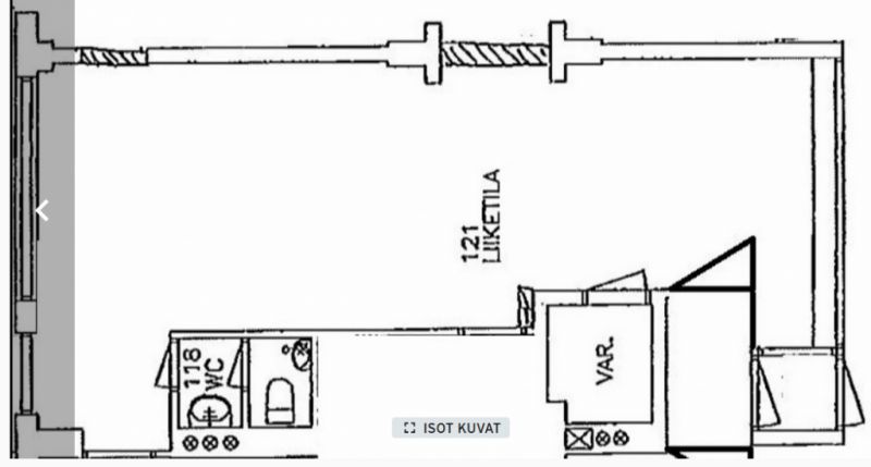 Tila voisi soveltua myös toimistoksi. Tila ei seovellu ravintolatilaksi.