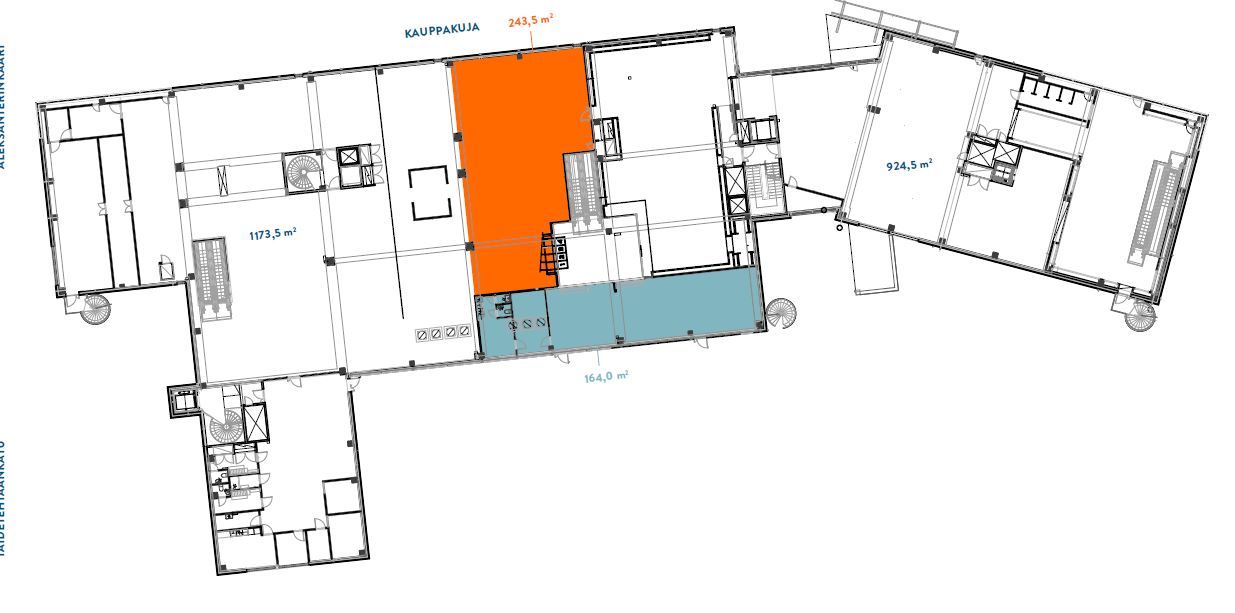 Vuokrataan 2.kerroksen 243,5 m2 moderni ja avara liiketila.