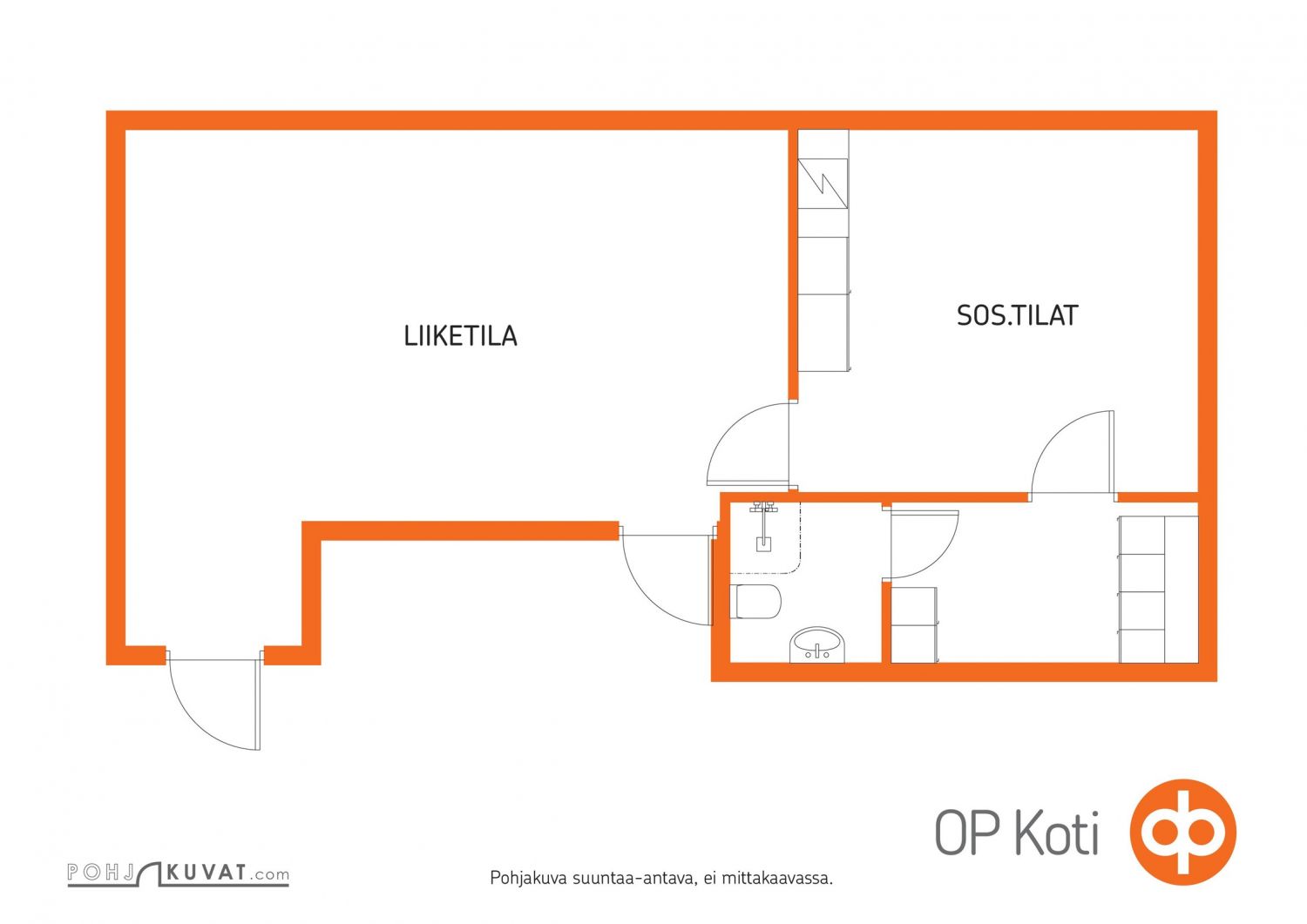 Keskustassa huippu paikalla katutason liiketila. Katutasossa 91 m2 liiketila ja kellarikerroksessa varastotila ja sos.tilat 64,5m2.