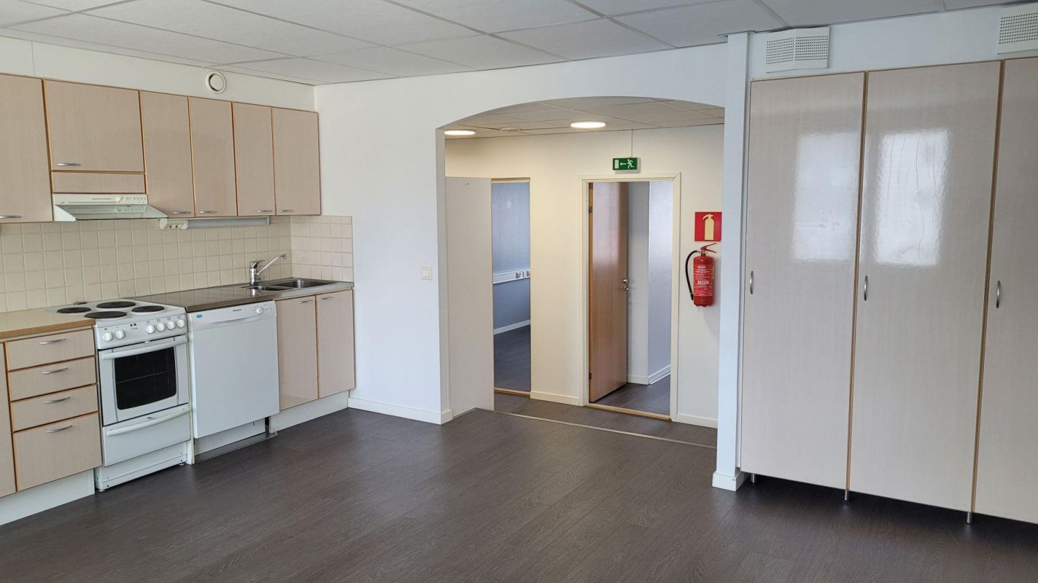 Tila on mahdollista jakaa kahden toimijan kesken, jolloin yhteinen keittiölounge.