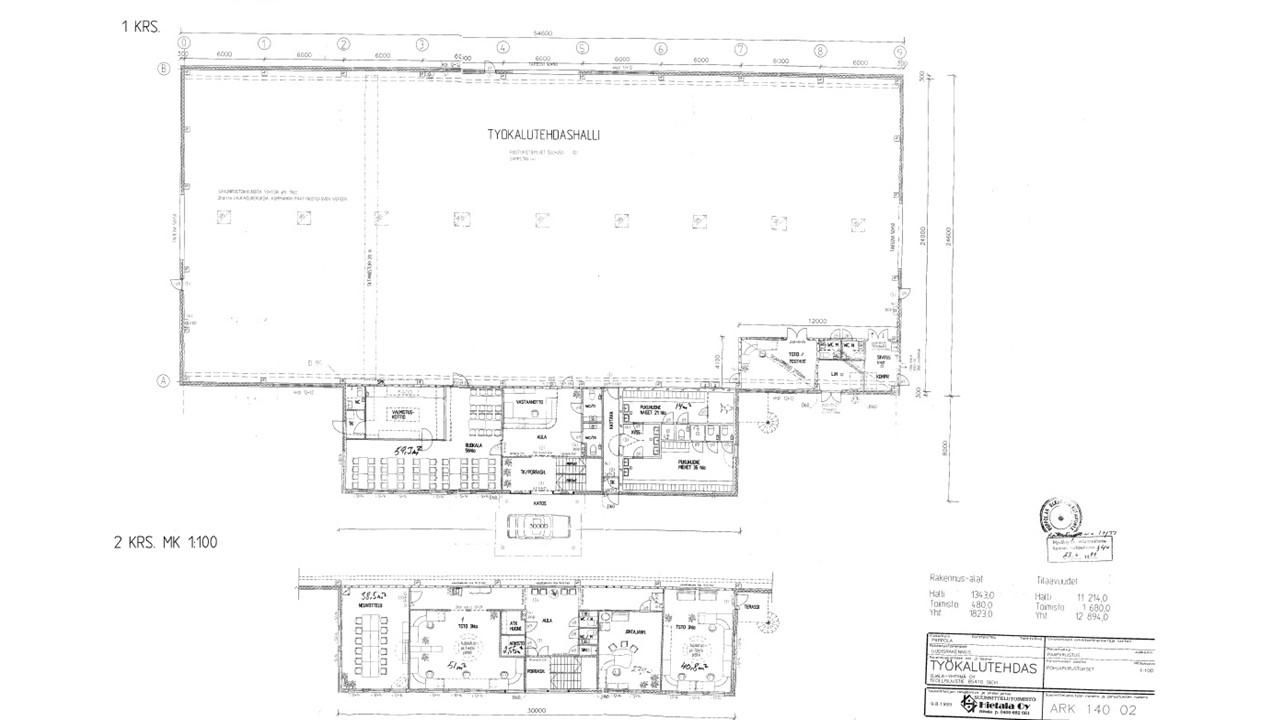 Tämä nykyaikainen rakennus sisältää tuotanto-, sosiaali- ja varastotiloja, työmaaruokalan 1. kerroksessa sekä näyttäviä toimisto- ym. aputiloja 2. kerroksessa. Pihalla on toimiston puolella runsaasti parkkipaikkoja sekä 24 lämmityspistoketolppaa. Rakennusoikeutta tontilla on jäljellä n. 1400 m².