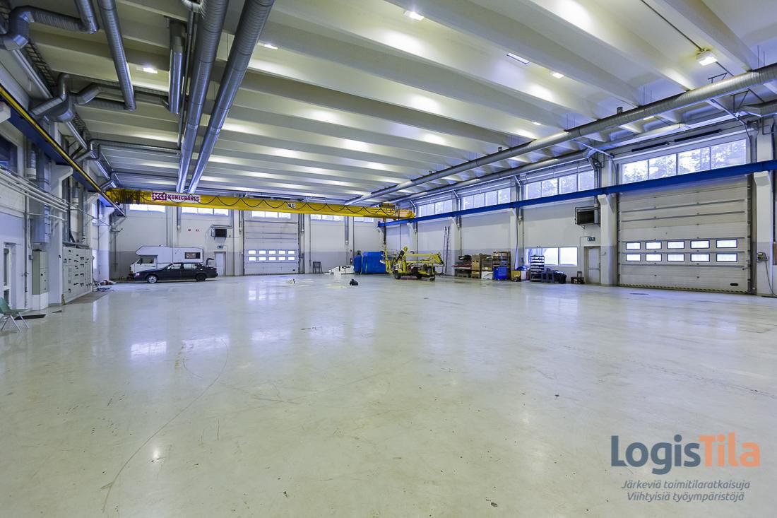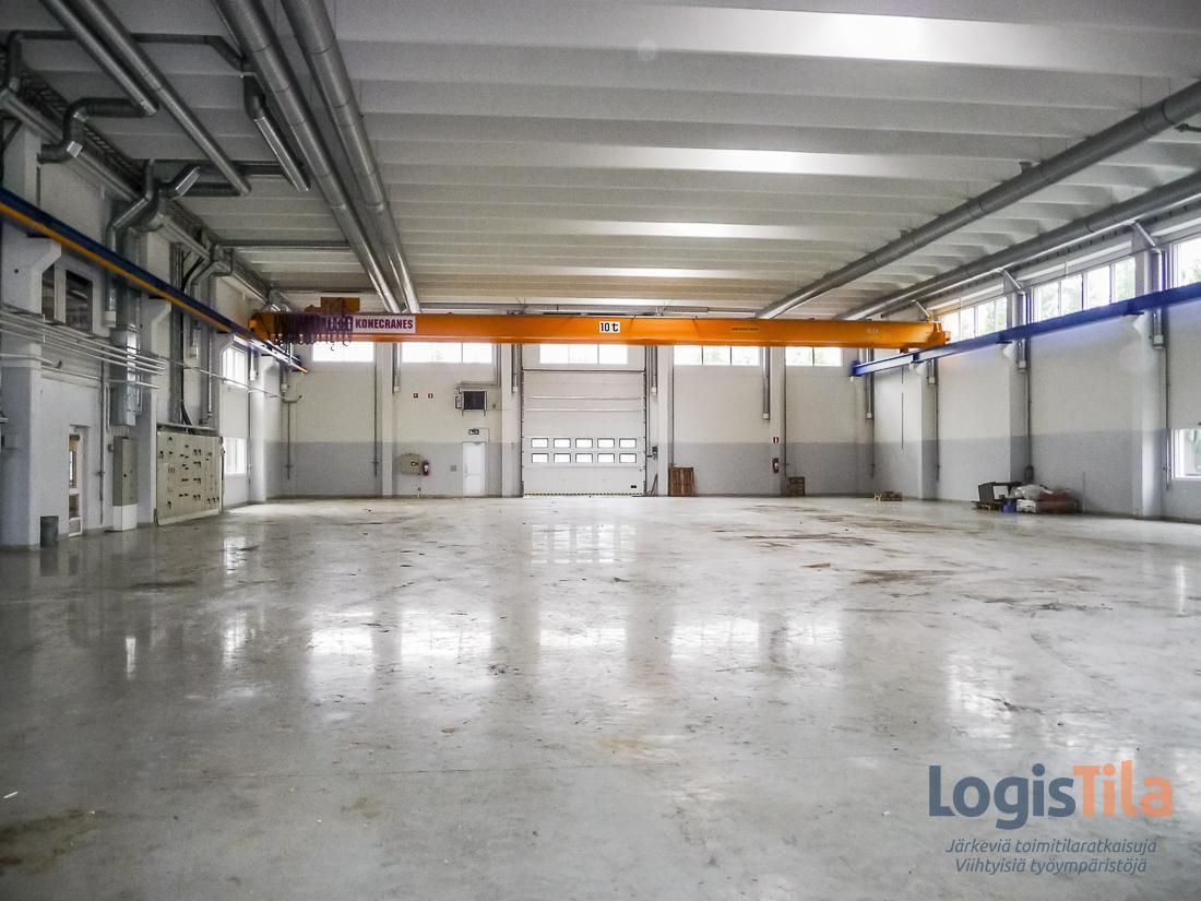 Konepajateollisuuden käyttöön suunnitellussa hallissa lattiarakenteet kestävät raskaankin kaluston käytön. 88-tien vieressä sijaitseva halli on betonirunkoinen ja hallissa oleva Konecranes 10 t siltanosturi kuuluu kauppaan.