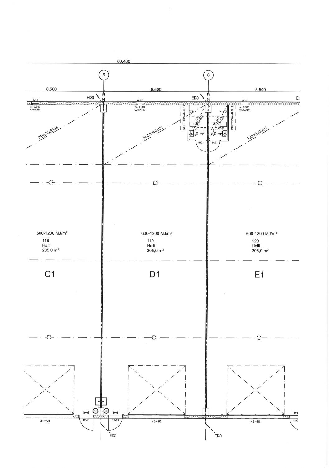 Hallin matalamman päädyn korkeus 7 880 ja korkeamman 8 700. Nosto-ovet 4 500x5 000. Kiinteistölle tulee valokuitu.