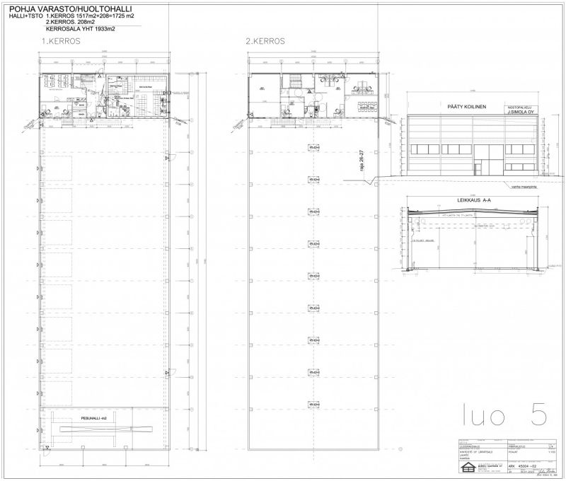 Liitteenä olevassa pohjakuvassa on omistajan omaan käyttöön tuleva halli puolikas.