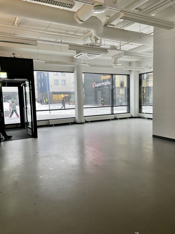 Tämä 90,5m2 kokoinen liiketila sijaitsee kiinteistön katutasossa. Tila soveltuu esimerkiksi kahvilaksi, ja kesäisin pöytiä ja tuoleja voi nostaa myös ulos tilan edustalle.