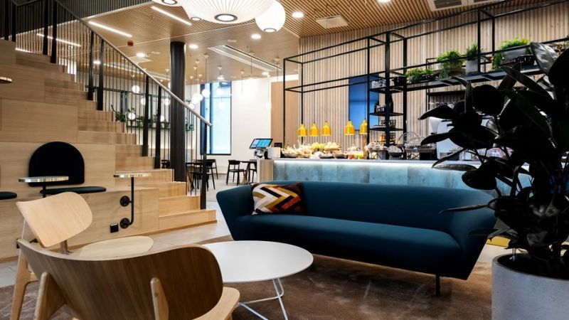 Uudistuneen M117:n vehreä ja eläväinen aula vastaanottoineen toivottaa niin talon käyttäjät kuin vieraatkin tervetulleeksi. Aulan viihtyisillä istuinryhmillä voit halutessasi työskennellä tai pitää vapaamuotoisia palavereita ja samalla nauttia lounaskahvilan tuoreista antimista.