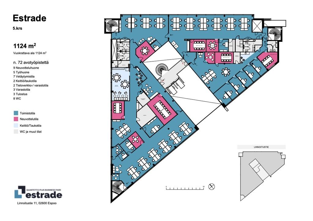 Kyseinen 1124m2 toimistokokonaisuus sijaitsee Estrade-talon 5. kerroksessa.