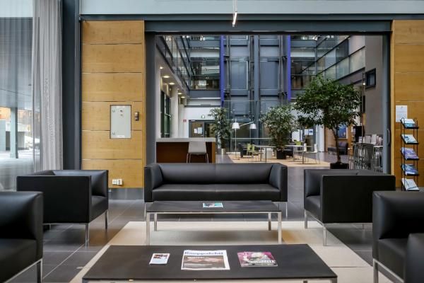 Avotoimisto, neuvotteluhuoneet, työhuoneet, vetäytymistilat, ja keittiö/taukotila, sekä wc:t.